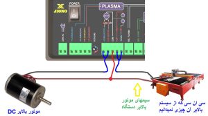 اگر موتور بالابر DC هست دو رشته سیمی که نهایتا وارد موتور میشود را پیدا کرده یک رشته را قطع نمایید و یک رشته را لخت نمایید، طبق تصویر زیر سیم های قطع شده به ورودی و خروجی های سوکت موتور در کنترل ارتفاع میروند و سیم لخت شده به com سوکت موتور میروند.به اینکه کدام سیم باید قطع شود و کدام سیم باید لخت شود، توجه نکنید و بعد از روشن کردن کنترل ارتفاع اگر جهت های بالا و پایین کنترل ارتفاع درست عمل کرد که درست وصل کردید. و اگر معکوس عمل کرد باید جای دو تا سیم هایی که قطع نمودید و لخت نمودید را برعکس نمایید. توجه داشته باشید کلیدهای بالابر شما حتی در زمان اتومات کار کردن کنترل ارتفاع و یا خاموش نمودن کنترل ارتفاع جهت کار با هوابرش باز هم فعال می مانند.