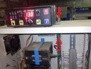 3- قاب دستگاه پلاسما را باز نمایید و طبق تصاویر صفحات 51-49 پایه های 400+ و 400- را پیدا نمایید و با کابل 0.75*2 آنها را با رعایت جهت مثبت و منفی به پشت کنترل ارتفاع وصل نمایید. بهتر است سیم آبی داخل کابل را هم به عنوان منفی در نظر بگیرید. ترمینال 2 شاخه را هم سر مسیر کابل و بیرون قاب پلاسما قرار دهید.