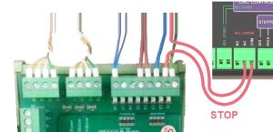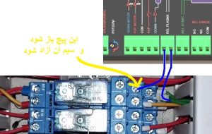 7- برای فرمان استوپ کافی هست سیم قرمز ورودی برد رادونیکس یا مچتری را باز کرده به آن سیم قرمز اضافه کرده و چسب بزنین، سپس ادامه سیم را به رله REL ERRORپشت کنترل ارتفاع و پایه NC برده و از پایه COM پشت کنترل ارتفاع برگردید و به همان ورودی که سیم قرمز به آن متصل بود وصل نمایید.(اتصال سری)